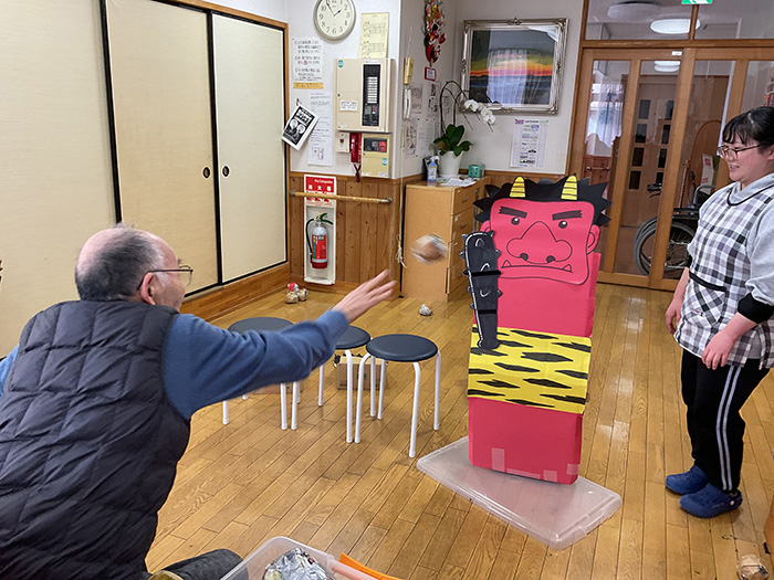 令和8年2月3日(火)節分の行事で利用者様が豆まきを行いました。